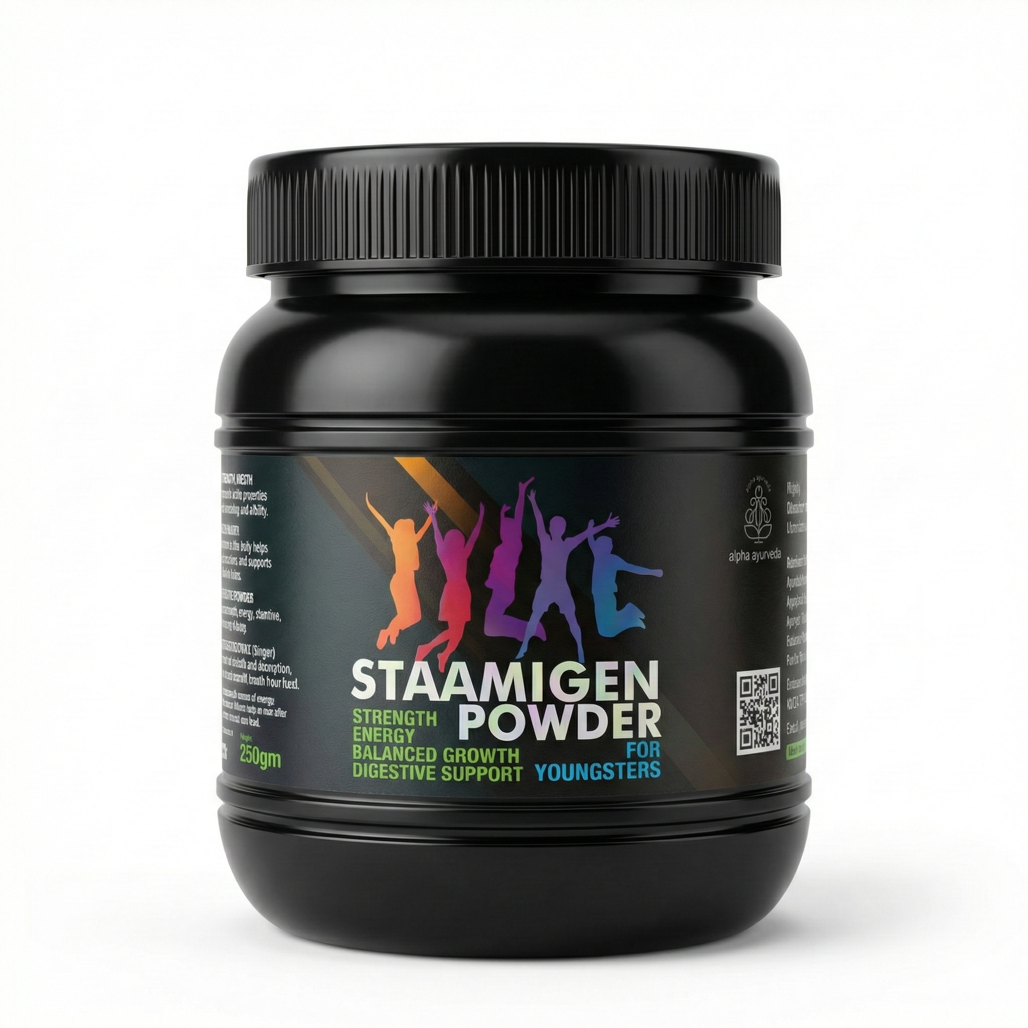 STAAMIGEN Powder is an AYUSH-approved product, which means it has been verified by the Indian government's regulatory body for traditional medicines, ensuring the highest standards of quality and safety.
