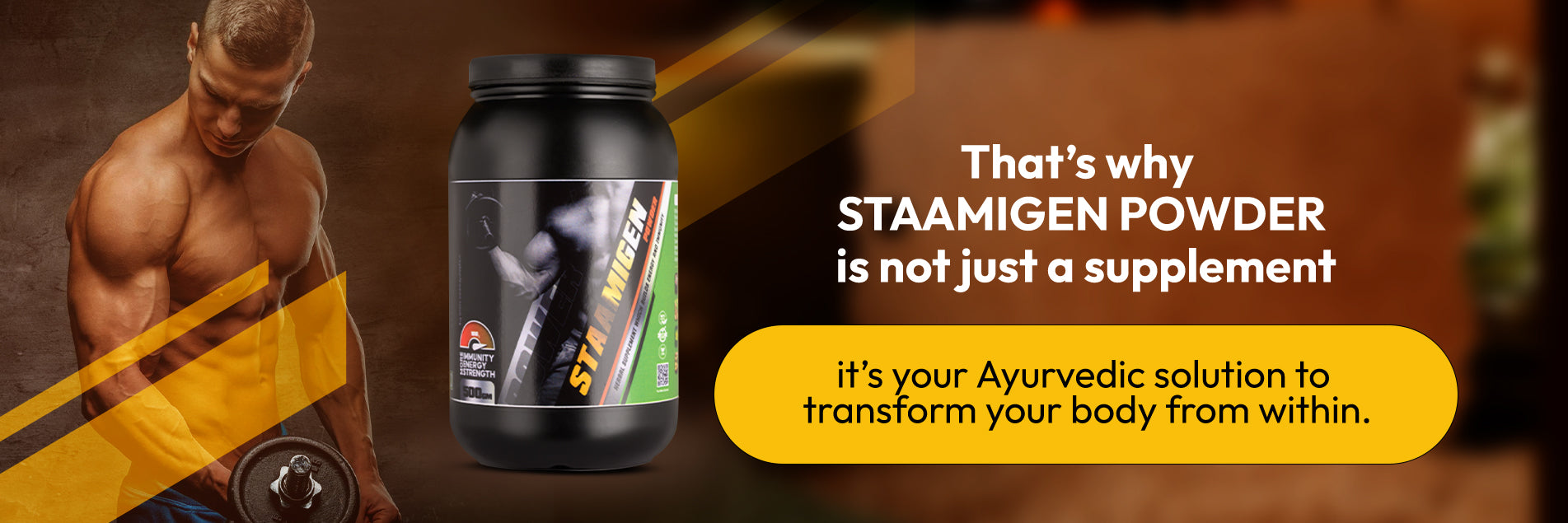 STAAMIGEN Powder uses a unique combination of Ayurvedic herbs that work together to provide multiple health benefits, especially for men seeking to gain weight and muscle mass: