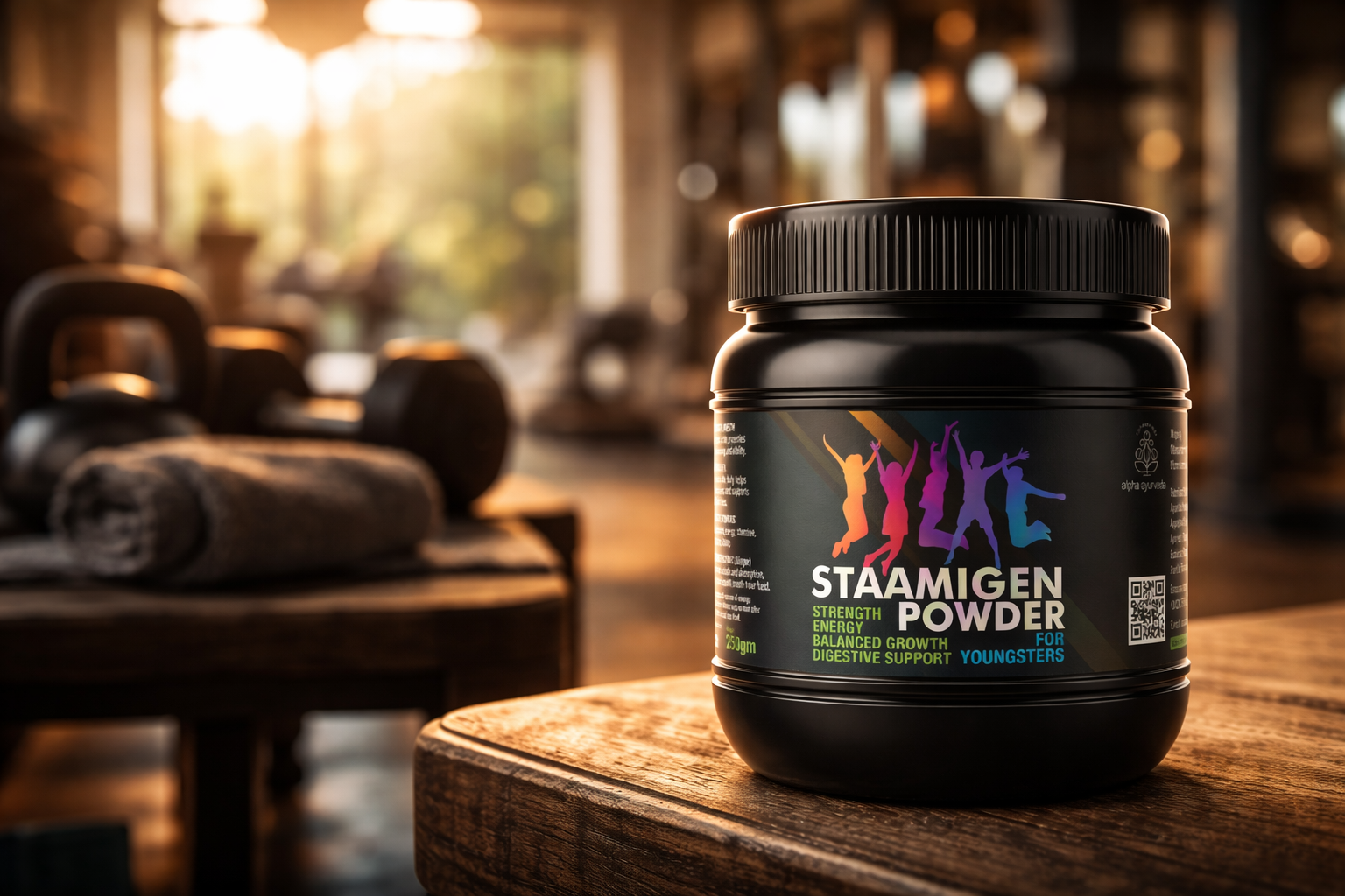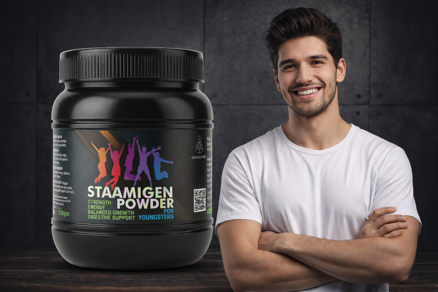 Staamigen Powder is the ultimate solution for slim young individuals who want to build a strong, muscular body naturally—just by eating the right home-cooked food.